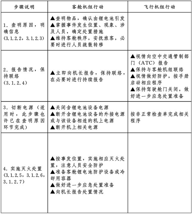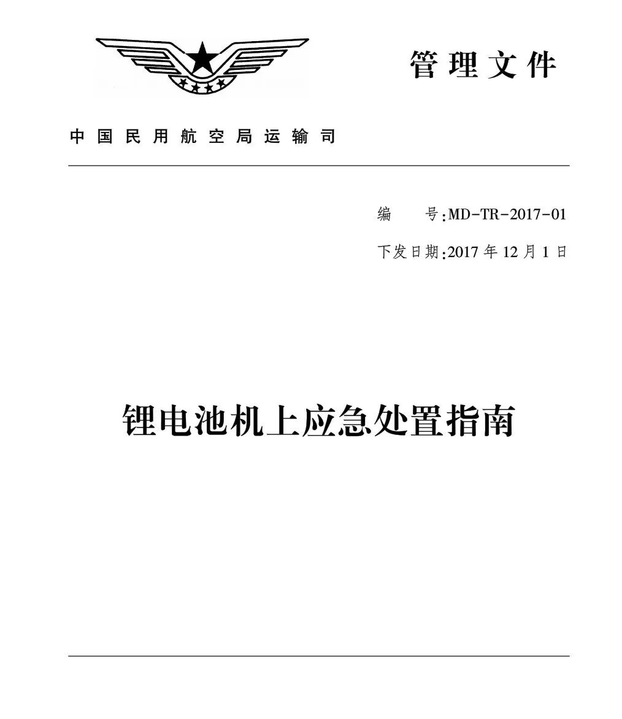 民航局對機上锂電池産品失火等也有應急處置指南。各航空公司需根據《指南》制定詳細的培訓方案和處置程序。