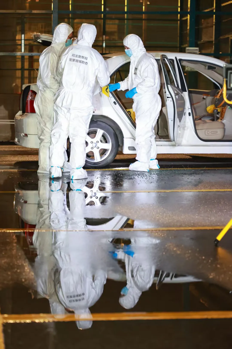 接報後,機場警務處與機場保安員即時封鎖現場並展開搜索。警方透過監控設施發現被捕男子曾將車輛停泊在機場南面停車場,經進一步檢查後,在車內發現一個可疑行李袋,鑑此,機場警務處隨即封鎖停車場範圍,並迅速進行人員疏散。