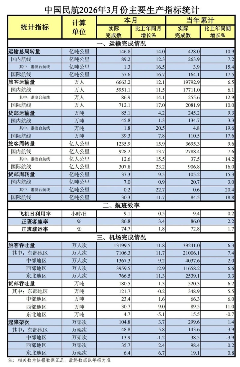 據中國民航局網站消息,中國民航局20日公布民航3月份主要生産指標統計數據。