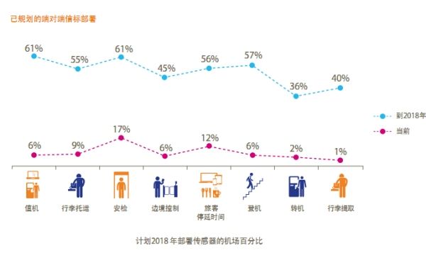 今天,部署可監控到達流程,如行李提取流程的傳感器幾乎不存在,目前只有超過三分之一的機場計劃在2018年部署。大多數機場仍主要將投資重點放在出境旅客環節。