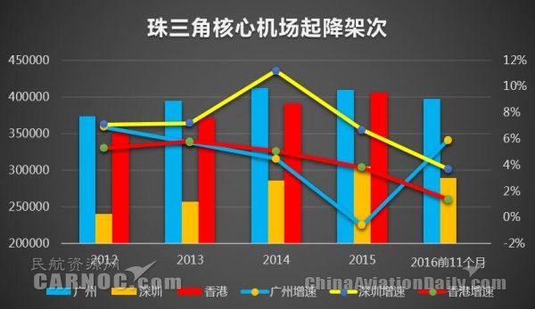 近年來珠三角機場群航空市場客運量始終保持快速增長,2014-2016年連續三年航空旅客淨增超過1100萬人次,2017年珠三角區域內航空客流量有望突破2億人次。