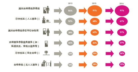 2013-2016年機場自助服務功能采用率